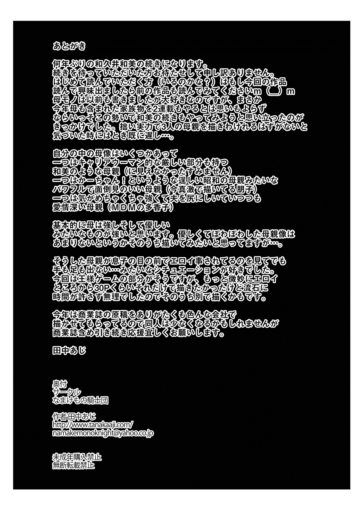 Unsweet Wakui Kazumi Plus SIDE Hitori Musuko Ryousuke Vol. 2 | [なまけもの騎士団 (田中あじ)] アンスイート和久井和美+(プラス)SIDE一人息子良介VOL2 [中国翻訳] - 180188_1000795