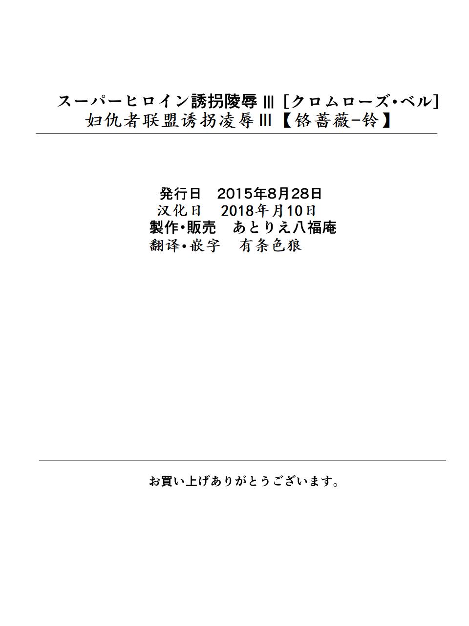 [Atelier Hachifukuan] Superheroine Yuukai Ryoujoku III - Superheroine in Distress [Chrome Rose Bell] | 凌辱诱拐3 [Chinese] [有条色狼汉化] | スーパーヒロイン誘拐陵辱 III - 236579_1238867